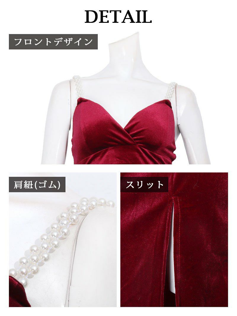 上品ベロアクリスマスドレス パールストラップスリット入りクリスマスロングドレス【Ryuyuchick】(M)(レッド/ブラック)
