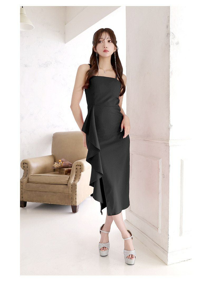 女性らしさを引き立てる大き目フリルが特徴のキャミソールキャバドレスです。