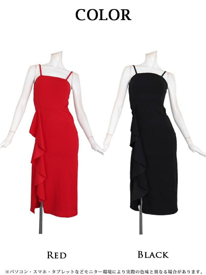 3. フリルキャミソールタイトロングドレス【RyuyuChick】(M)(レッド/ブラック)
