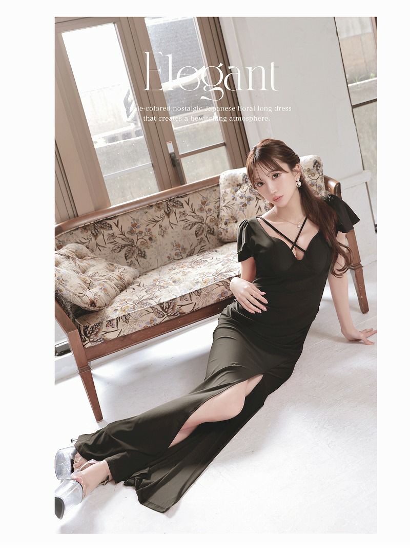 目を惹く大胆な谷間見せが男心をくすぐるロングドレスです。