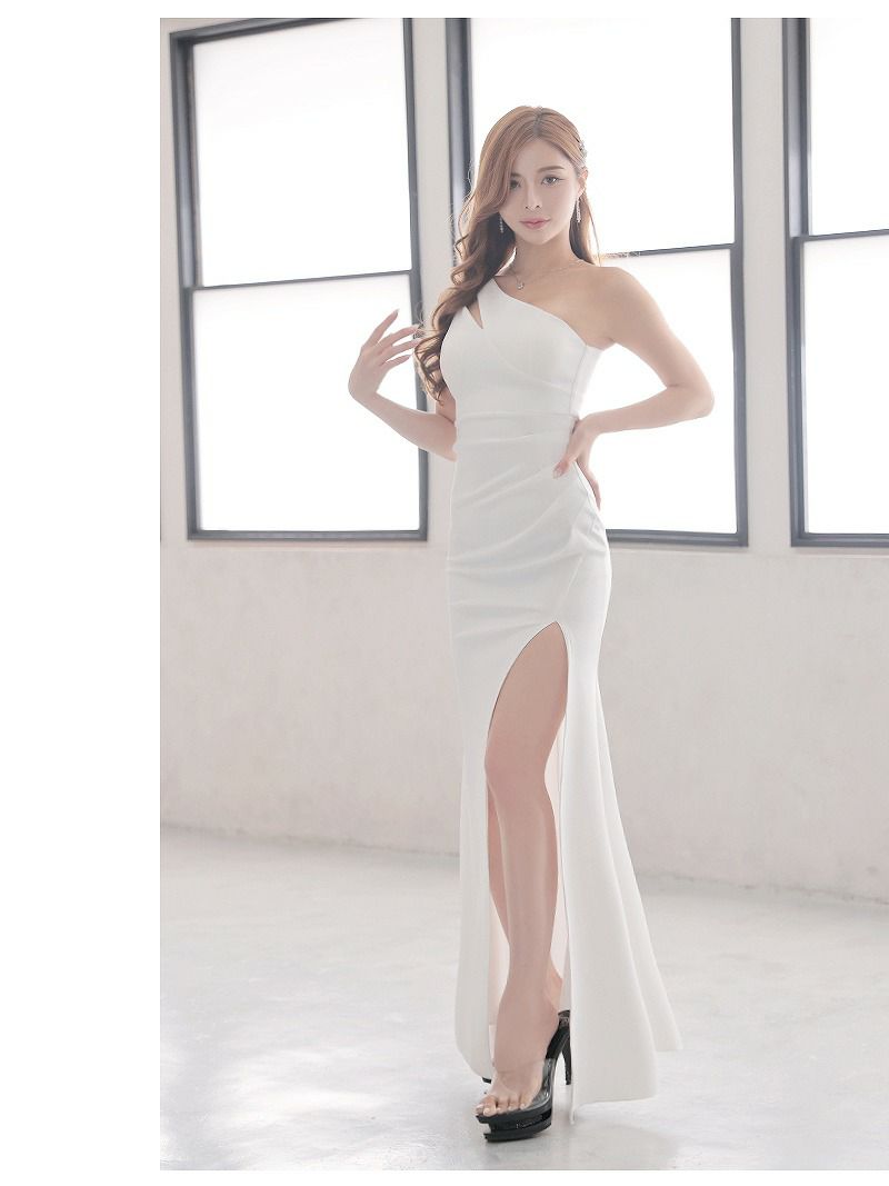 アシンメトリー美ライン片肩魅せキャバロングドレス【Ryuyu】