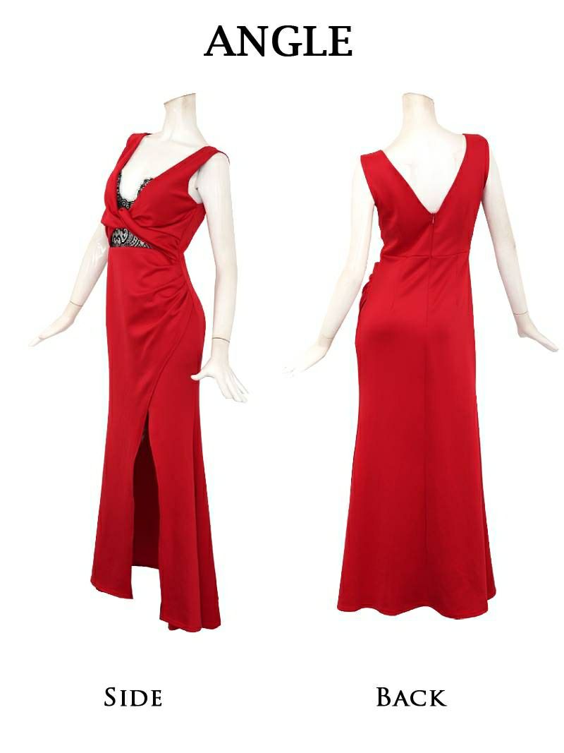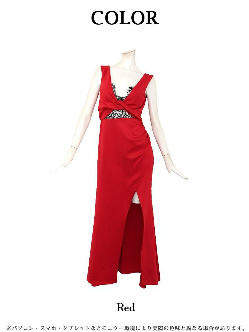 4. レッド×ブラックレース大胆谷間見せセクシーロングドレス【Ryuyu】(S/M/L)(レッド)