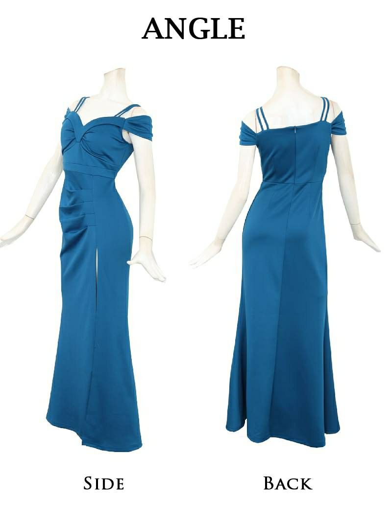 デコルテを綺麗に見せるオフショルデザインが、色っぽさを引き出すロングドレスです。