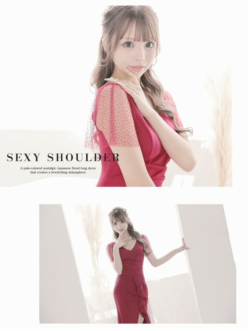 フリルキラ袖深めスリットロングドレス あいさ キャバドレス【RyuyuChick】