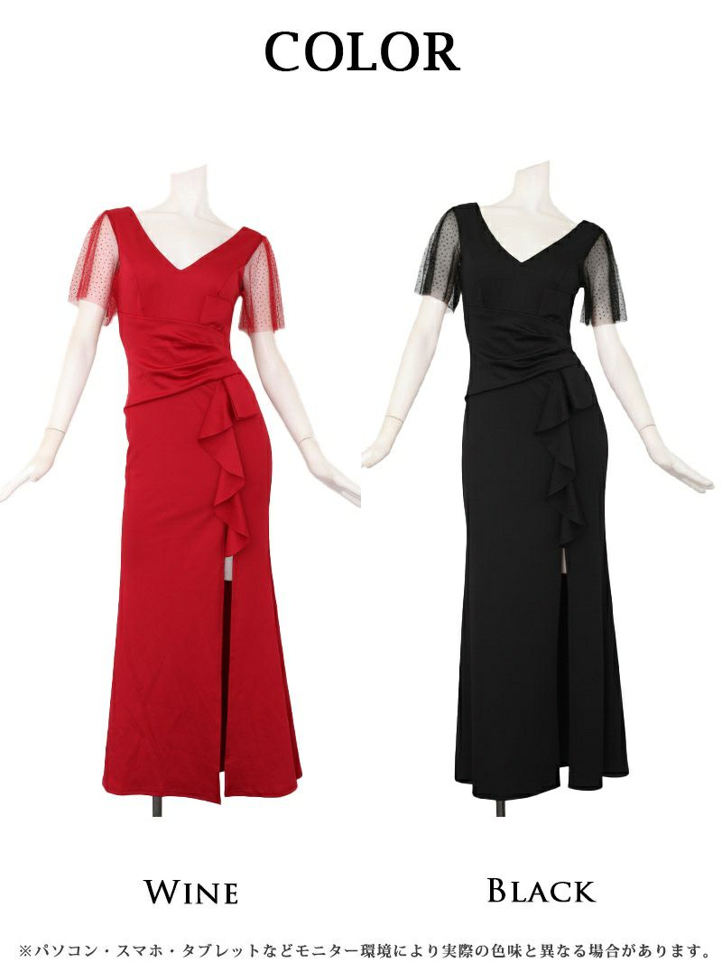 5. 先行予約割¥4980→¥4731!※一部予約販売※フリルキラ袖深めスリットロングドレス あいさ キャバドレス【RyuyuChick】(S/M/L/XL(2L)/XXL(3L))(ブラック/ワイン)
