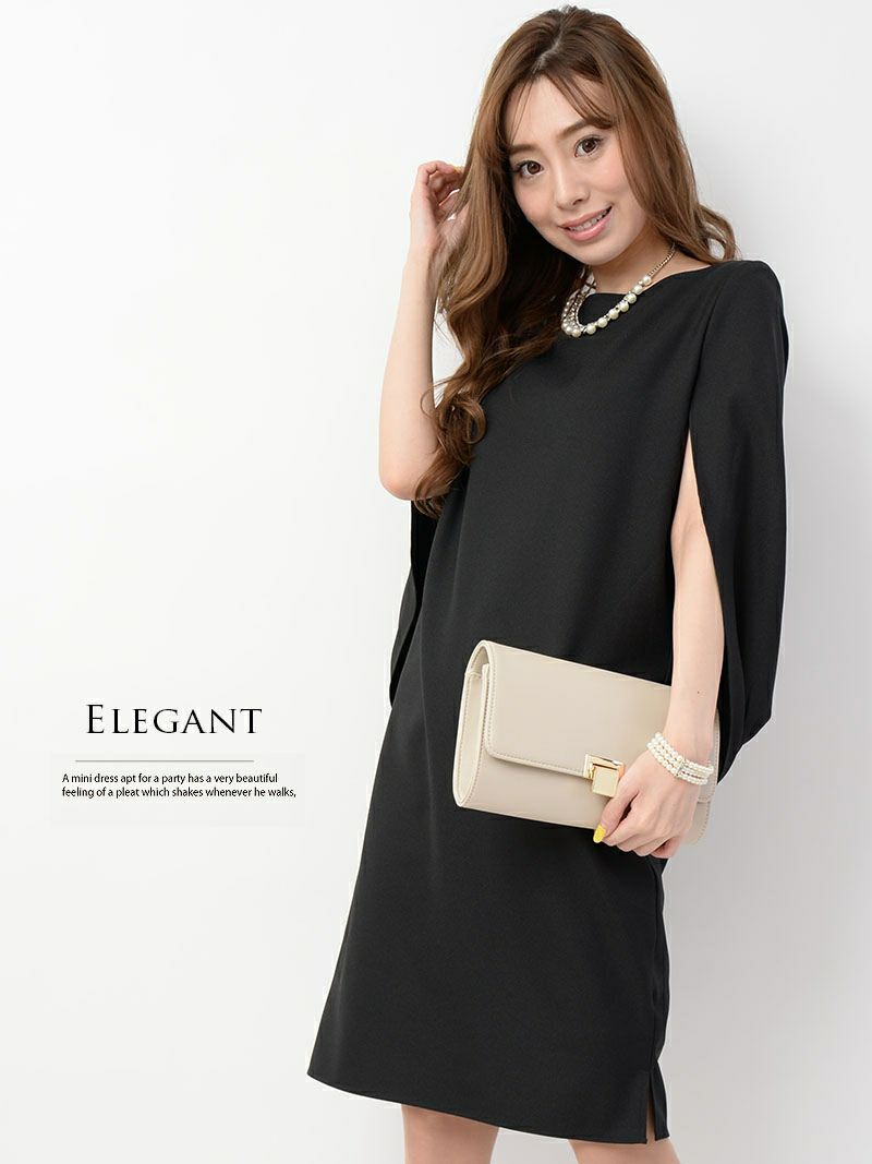 エレガントなケープスリーブが特徴のパーティードレス。