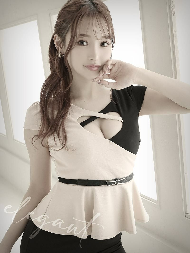 谷間見せペプラムミニドレス 体型カバーキャバクラドレス【Ryuyu】