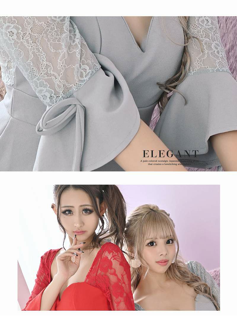 優雅さ際立つドレス 華やかフレア袖レースミニドレス【RyuyuChick】(S/M/L/XL)(ブラック/レッド/ホワイト/ピンク/ライトブルー)