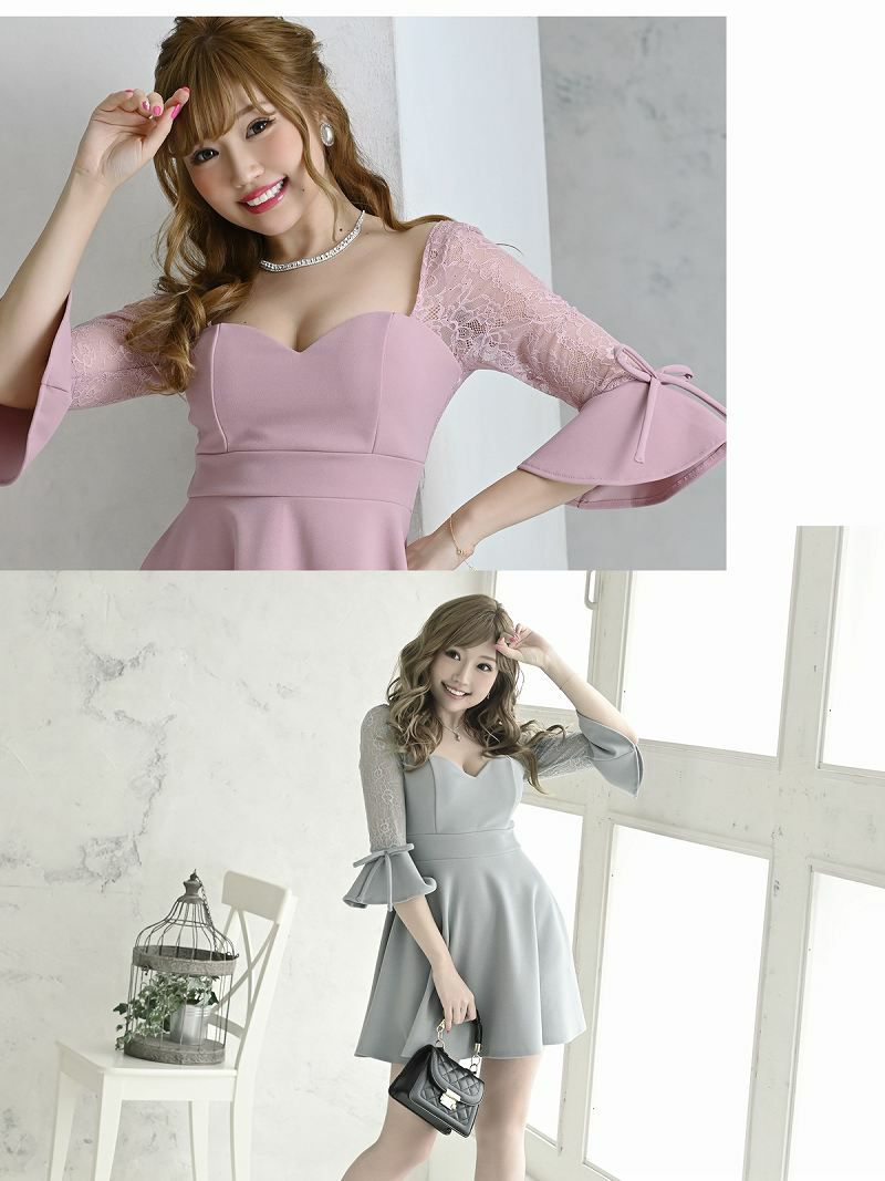 袖ありのフレアデザインが特徴的なミニ丈レースドレスが登場!