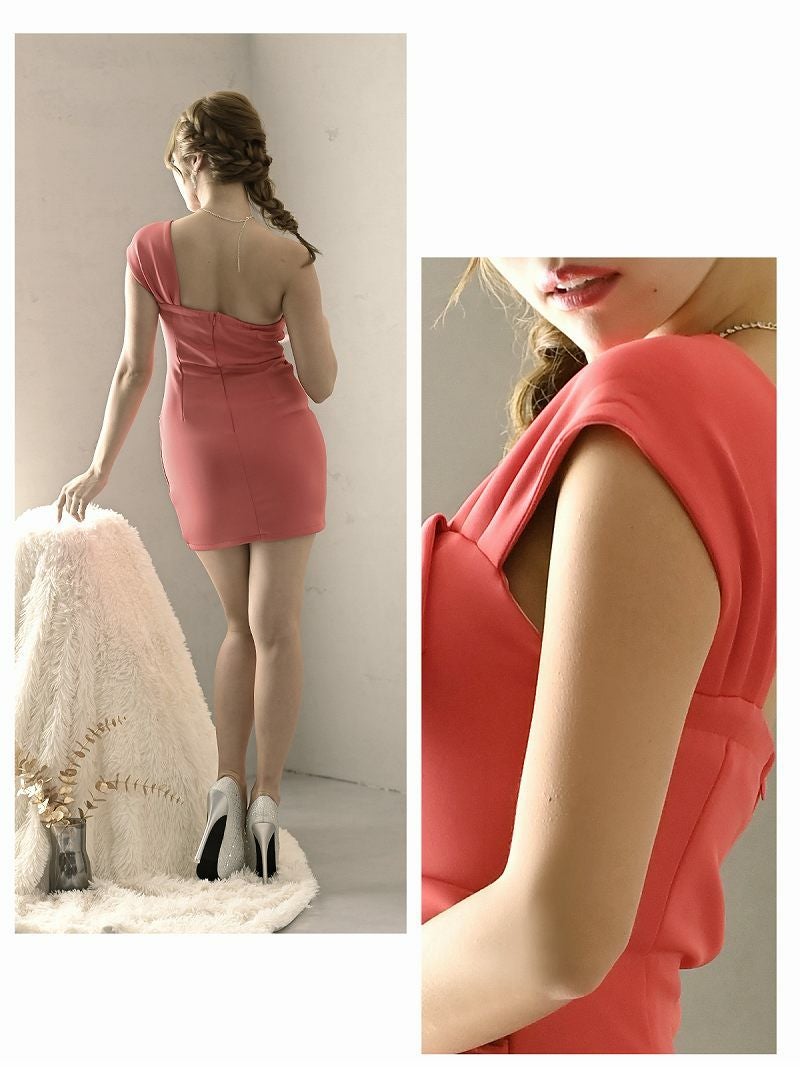 ワンショルダー×アシメデザインが目を引く、大人セクシーなタイトドレス。
