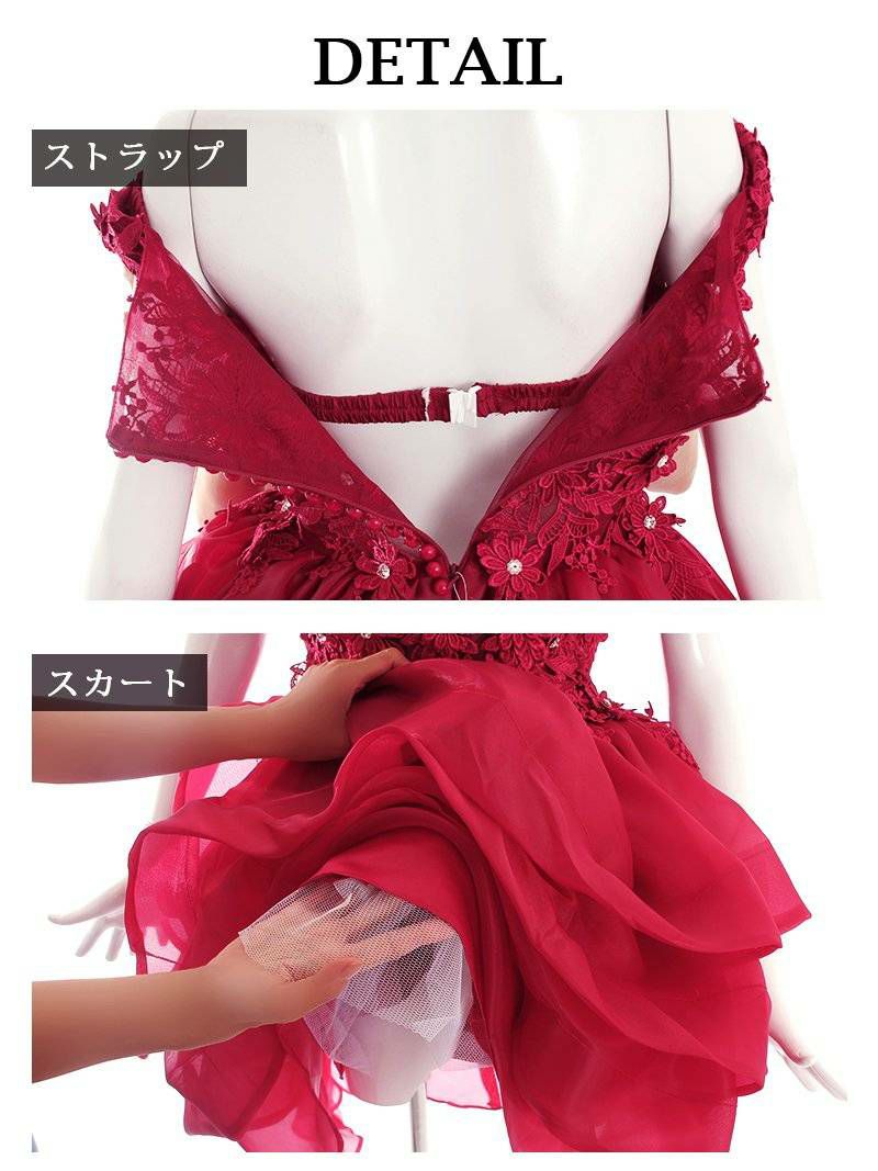 豪華レースオーガンジーAラインキャバクラドレス【Ryuyu】肩魅せフリルミニドレス
