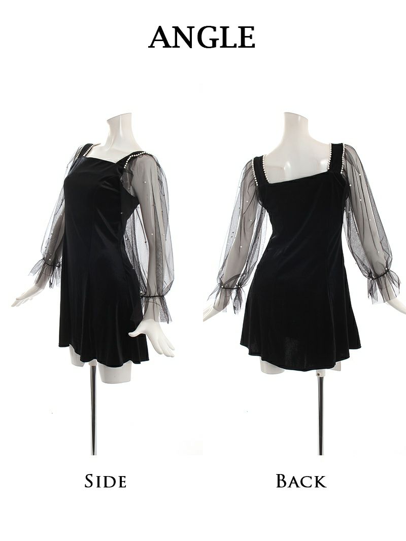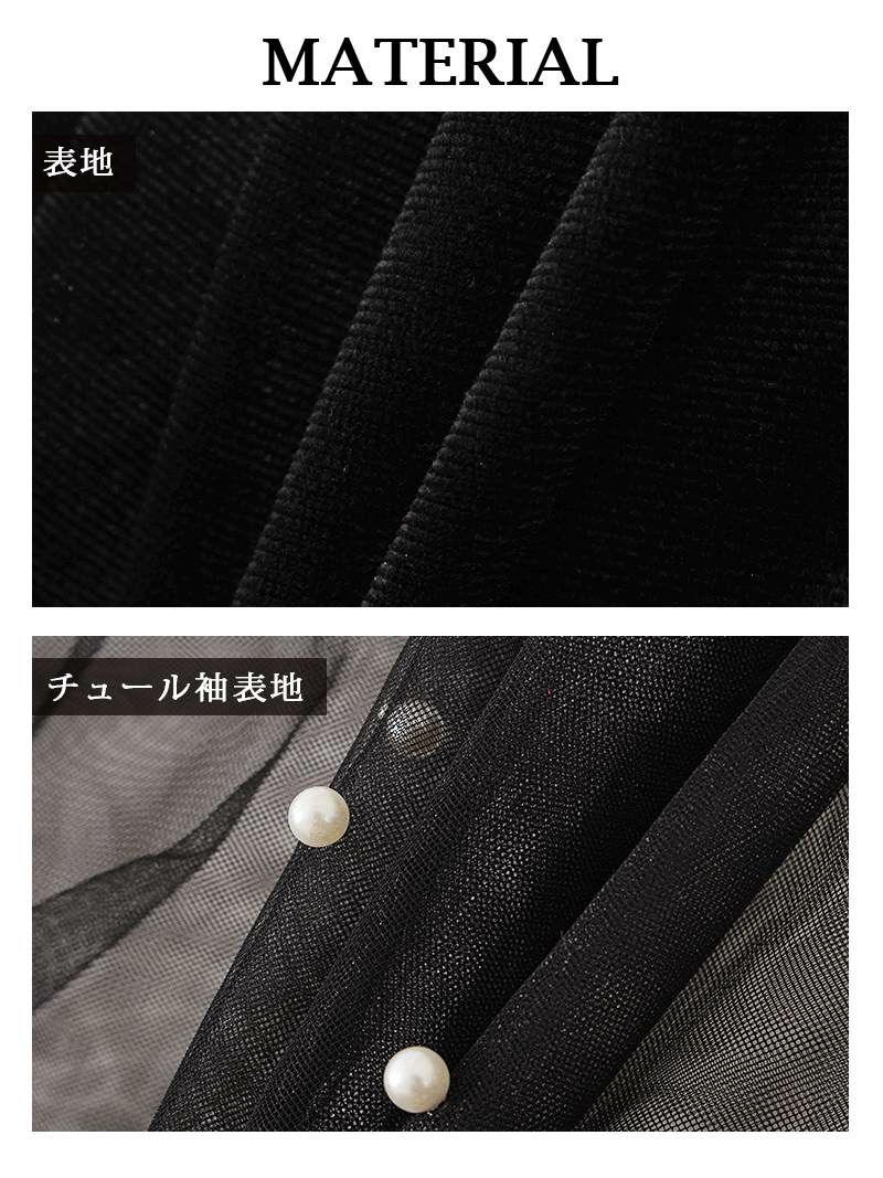 4. ベロアデザインドーリーなチュール袖キャバドレス  ミニドレス【Ryuyu】(S/M/L)(ブラック) ptpl