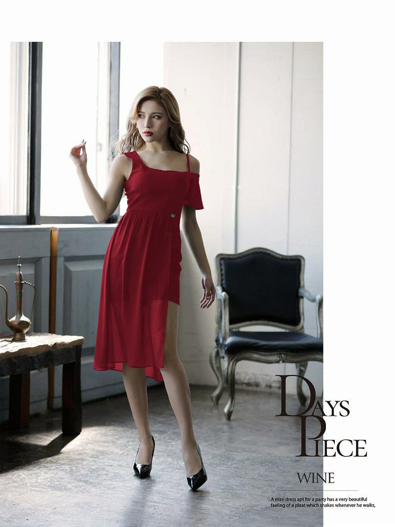 スタイリッシュなレイヤードドレス スーパーセール¥8280→¥7452! アシンメトリー袖付きワンカラー韓国キャバドレス【DAYS PIECE】オルチャン風レイヤードタイトミニドレス