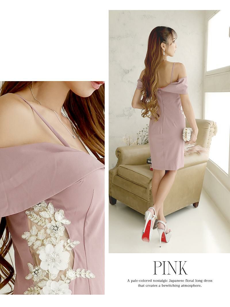 6. ワンカラー豪華刺繍サイドシアーミニドレス 武田静加 着用キャバクラドレス【Belsia】(S/M/L)(ワイン/ピンク)