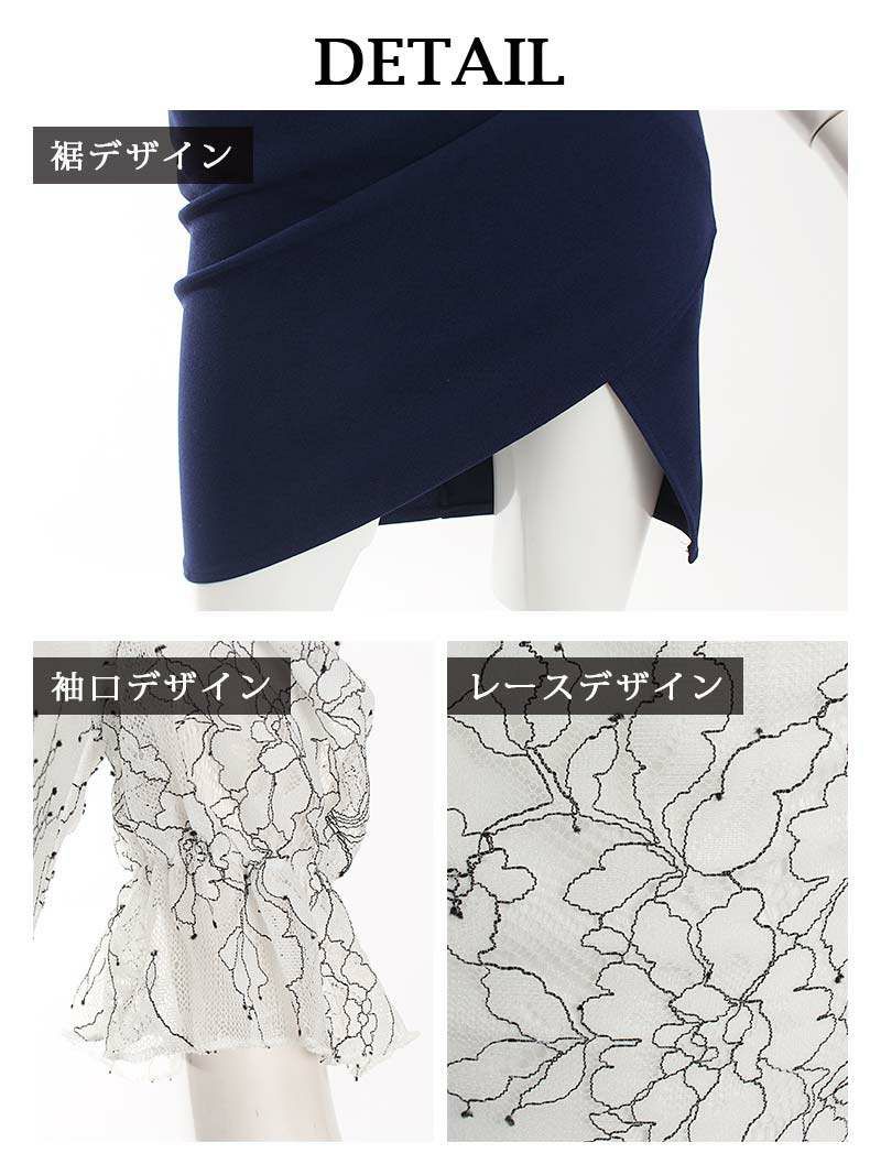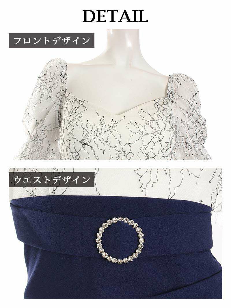 4. スーパーセール¥6462→¥5815! ミニマムサイズSALE¥7180→¥6462! 花柄レース半袖キャバクラドレス まぁみ 着用キャバドレス【Ryuyu】(S/M/L)(ブルー/ネイビー/ワイン)