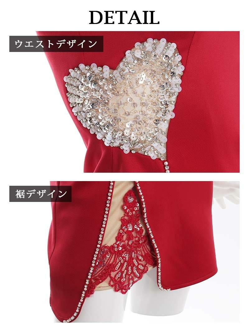 5. 【Angel R/エンジェルアール】ビジュー&スパンコールウエストハートデザインキャミミニドレス(S/M)(レッド)