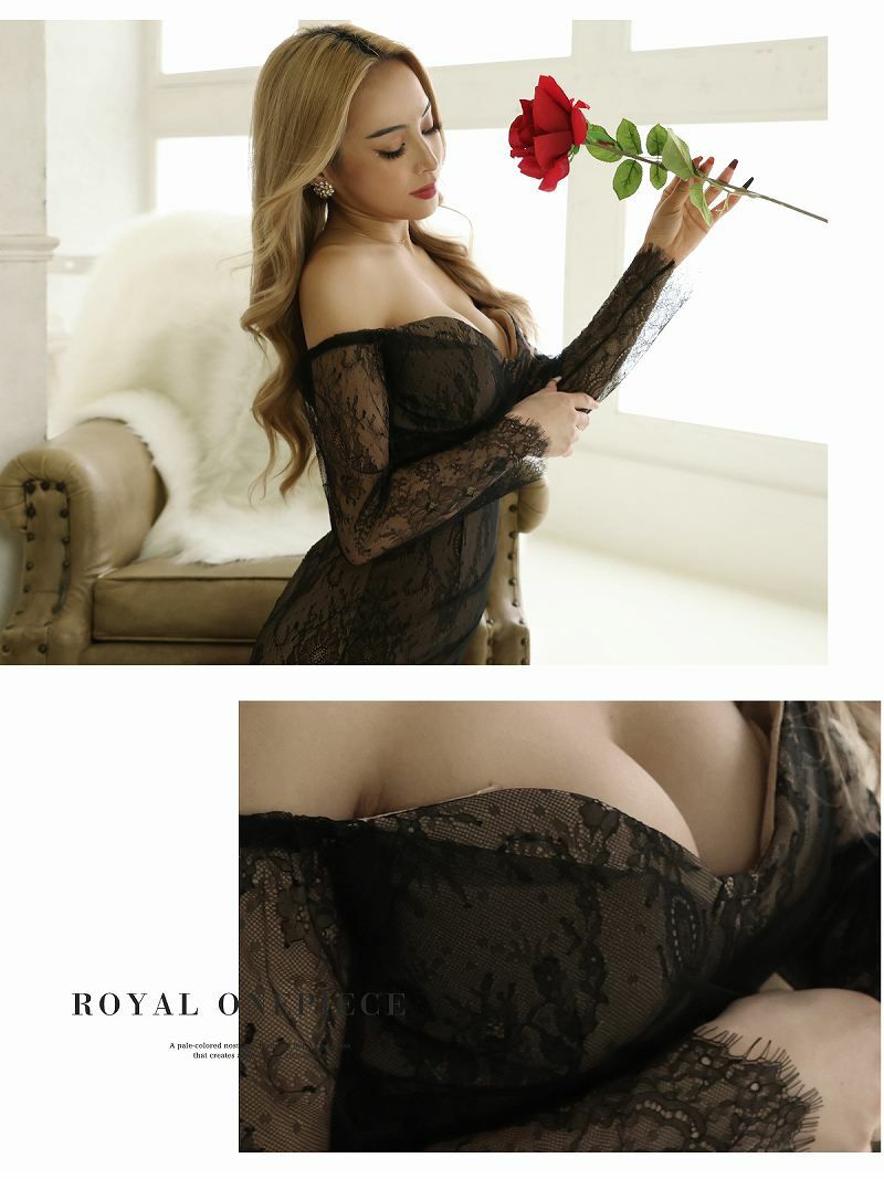 シアーレースオフショル長袖ミニドレス honoka 着用 えちえちミニドレス【Ryuyu】