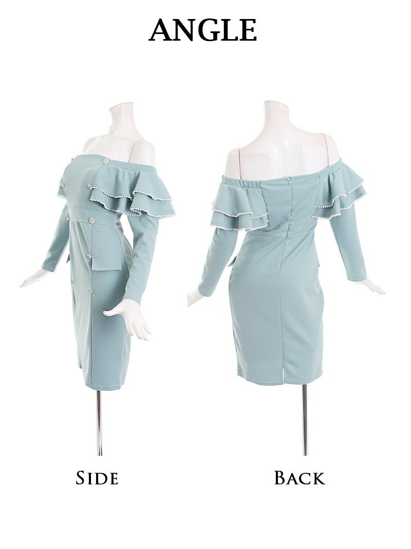 luxuryな色っぽさで上品に着こなす 膝丈オフショルダー袖付きフリル韓国ワンピース KANO 着用 キャバワンピース【DaysPiece】(S/M/L)(ブラック/ミント)