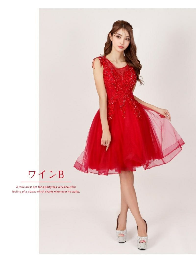 4. 【選べる7デザイン】インポートフレアバースデードレス【Ryuyu】(M)(ワインB/ワインG/ネイビーH/ワインI/レッドJ/ワインK/シルバーM)