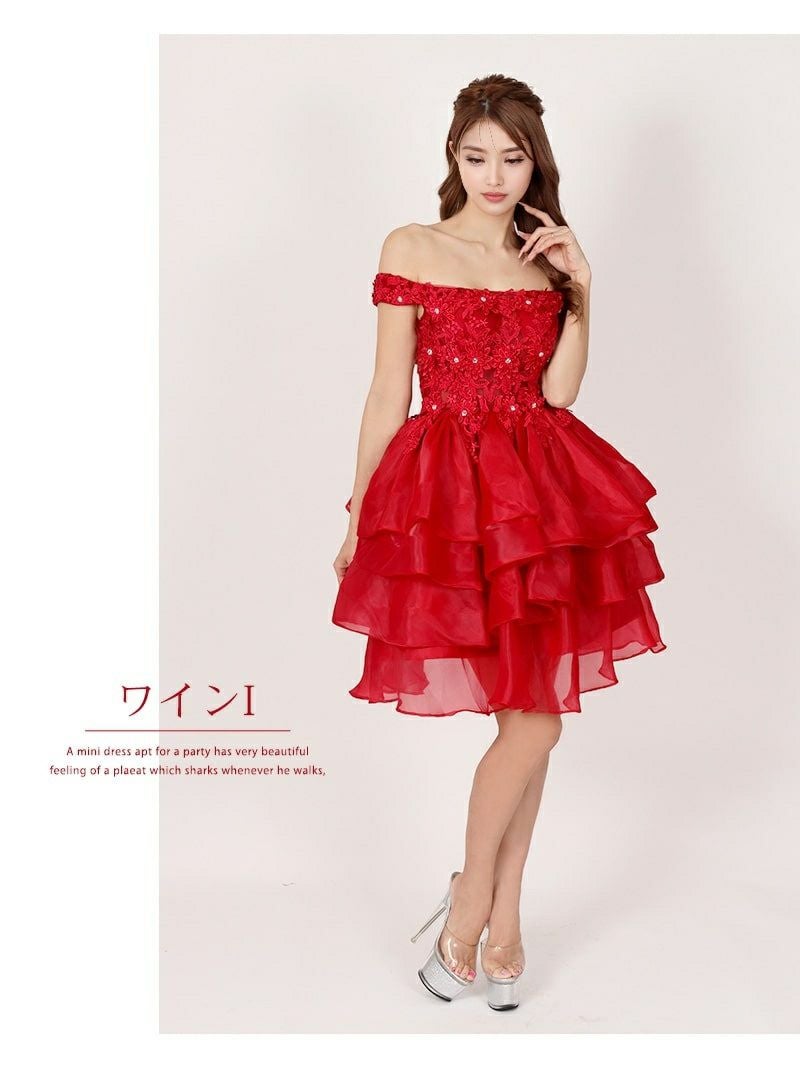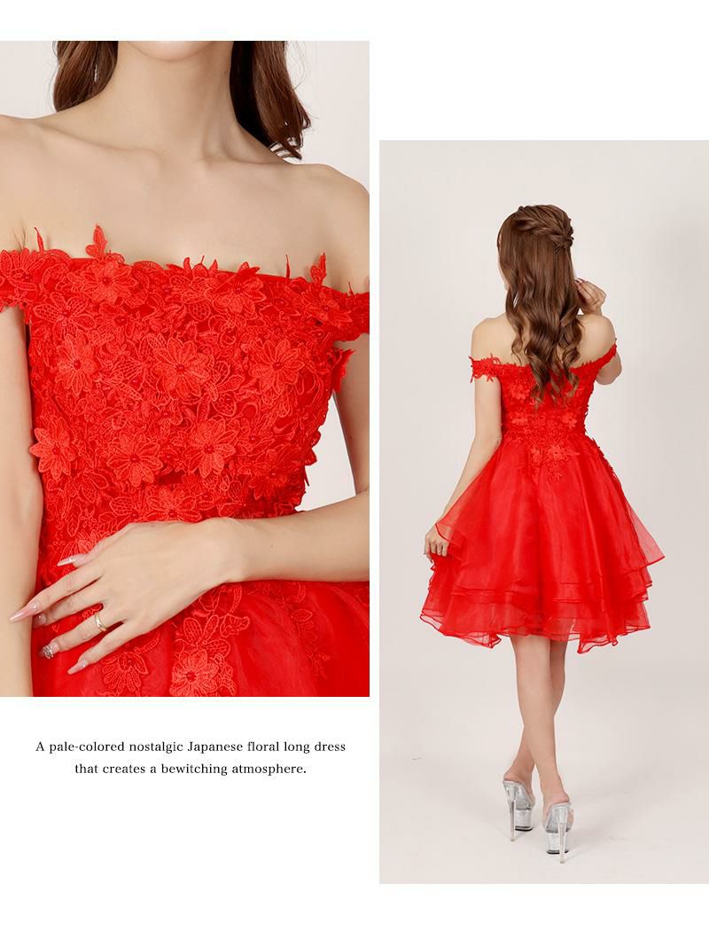 ふわふわフレアの膝丈デザインが、派手で華やかな印象をプラス。