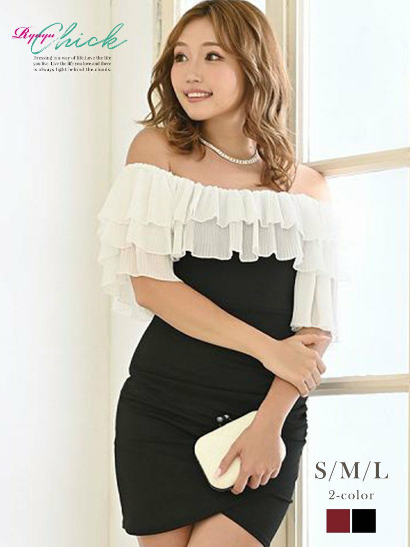韓国風の色っぽフリルドレス スーパーSALE¥4380→¥4332! フリルオフショルダーラウンジドレス【RyuyuChick】(S/M/L)(レッド/ブラック)