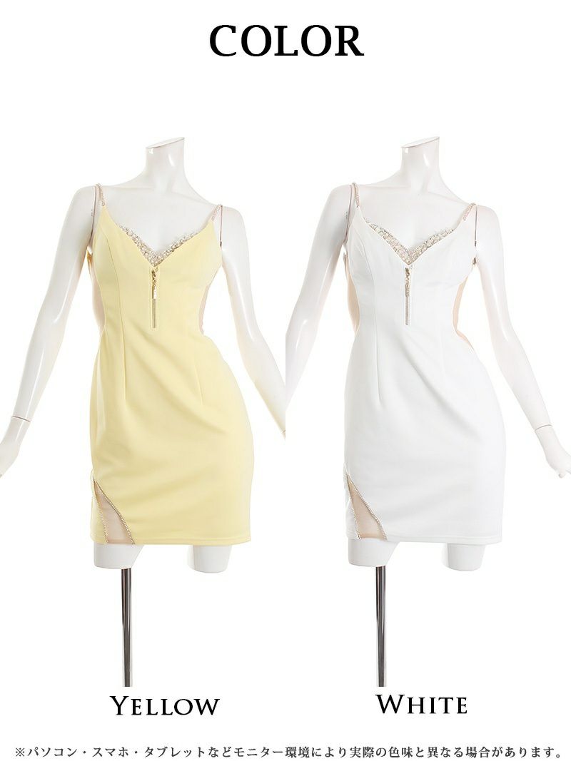 4. 【Angel R/エンジェルアール】フロントバストジップビジューキャバドレス(S/M)(ホワイト/イエロー)