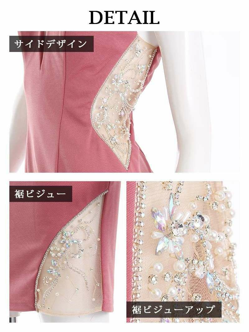 【Angel R/エンジェルアール】パールビジュー付き谷間見せミニキャバドレス