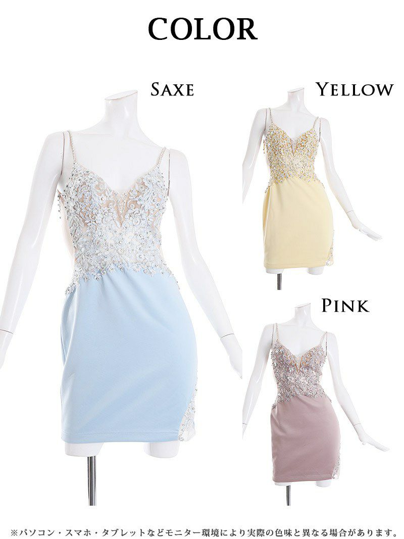 4. 【Angel R/エンジェルアール】華やか花柄レースシアーミニドレス(S/M)(ピンク/イエロー/サックス)