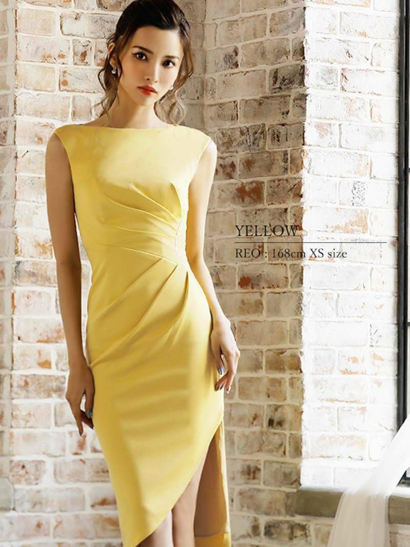 5. 【Veautt/ヴュート】サイドシアーアシメスカート膝丈キャバミニドレス(XS/S)(チャコールグレー/イエロー/ブルー)
