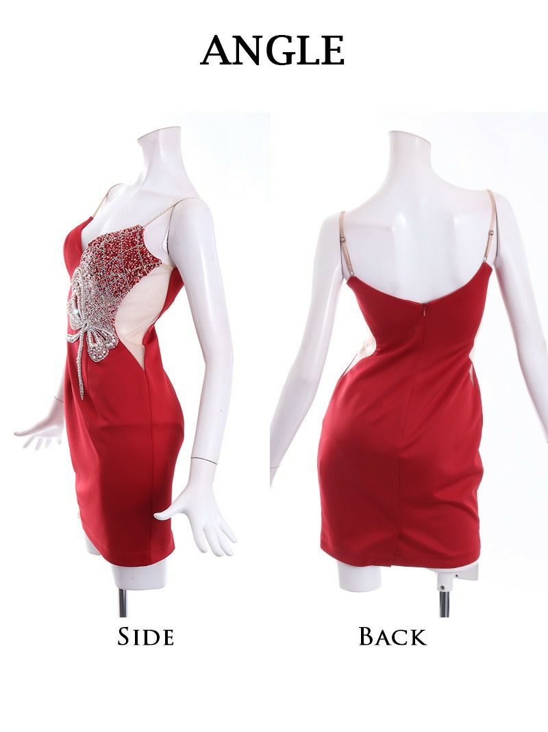 5. 【Angel R/エンジェルアール】スパンコール×パールリボンモチーフタイトキャバドレス(S/M)(レッド)
