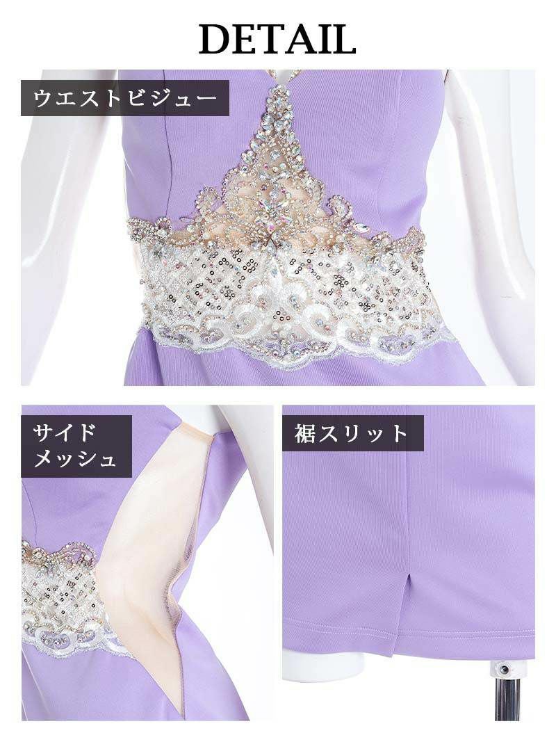 4. 【Angel R/エンジェルアール】シアーデザインビジューホルターネックキャバドレス(S/M)(ブラック/レッド/ライラック/トランキルブルー)