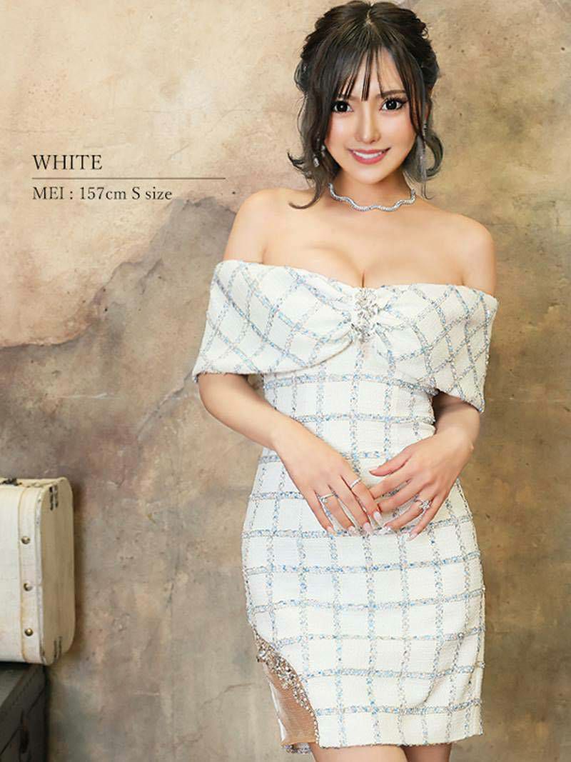リボンモチーフオフショルツイードタイトキャバミニドレス【Angel R/エンジェルアール】