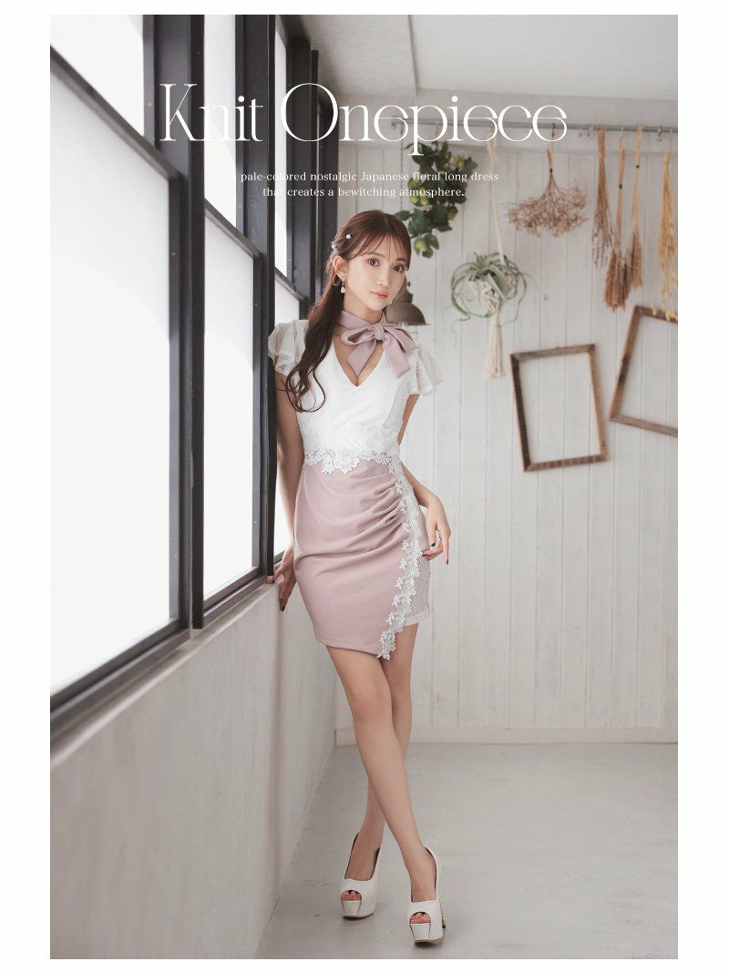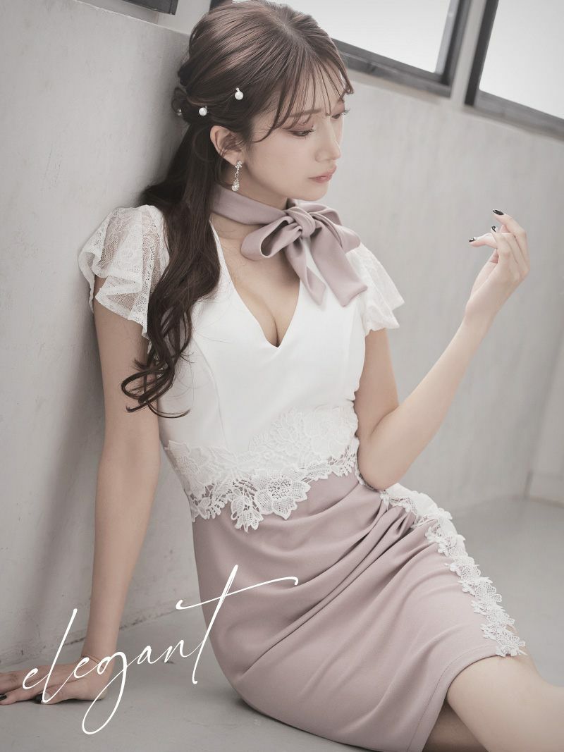 また首元のリボンが小顔効果を期待できるのとSNS映えも狙えるキャバクラドレスです。