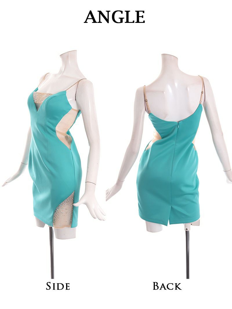 バストビジューが輝く谷間でイチコロ バストメッシュビジュータイトキャバミニドレス【Angel R/エンジェルアール】(XS/S/M)(ブラック/ブルー/グリーン/イエロー)
