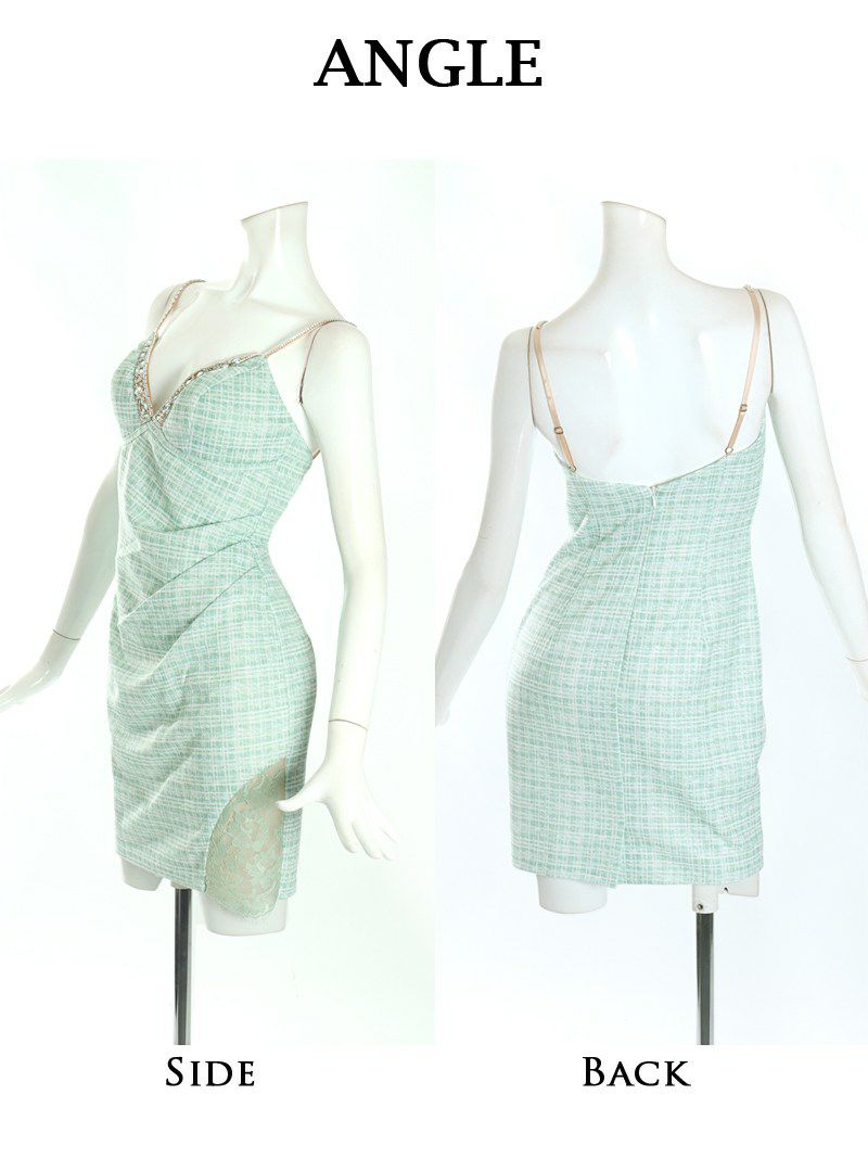 4. 【Angel R/エンジェルアール】サマーツイードシャーベットカラー谷間盛りキャミソールキャバドレス(S/M)(ピンク/グリーン/ブルー)