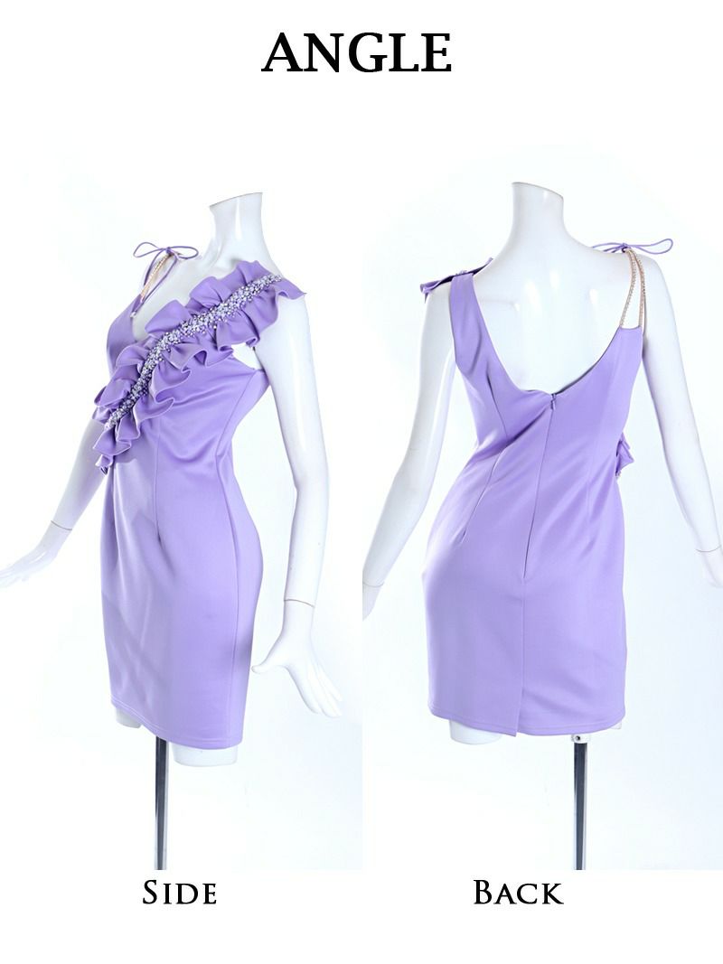 パールビジューで高見え豪華! 【Angel R/エンジェルアール】インポート風フリルデザインアシンメトリーミニドレス(S/M)(ライラック/ネイビー)