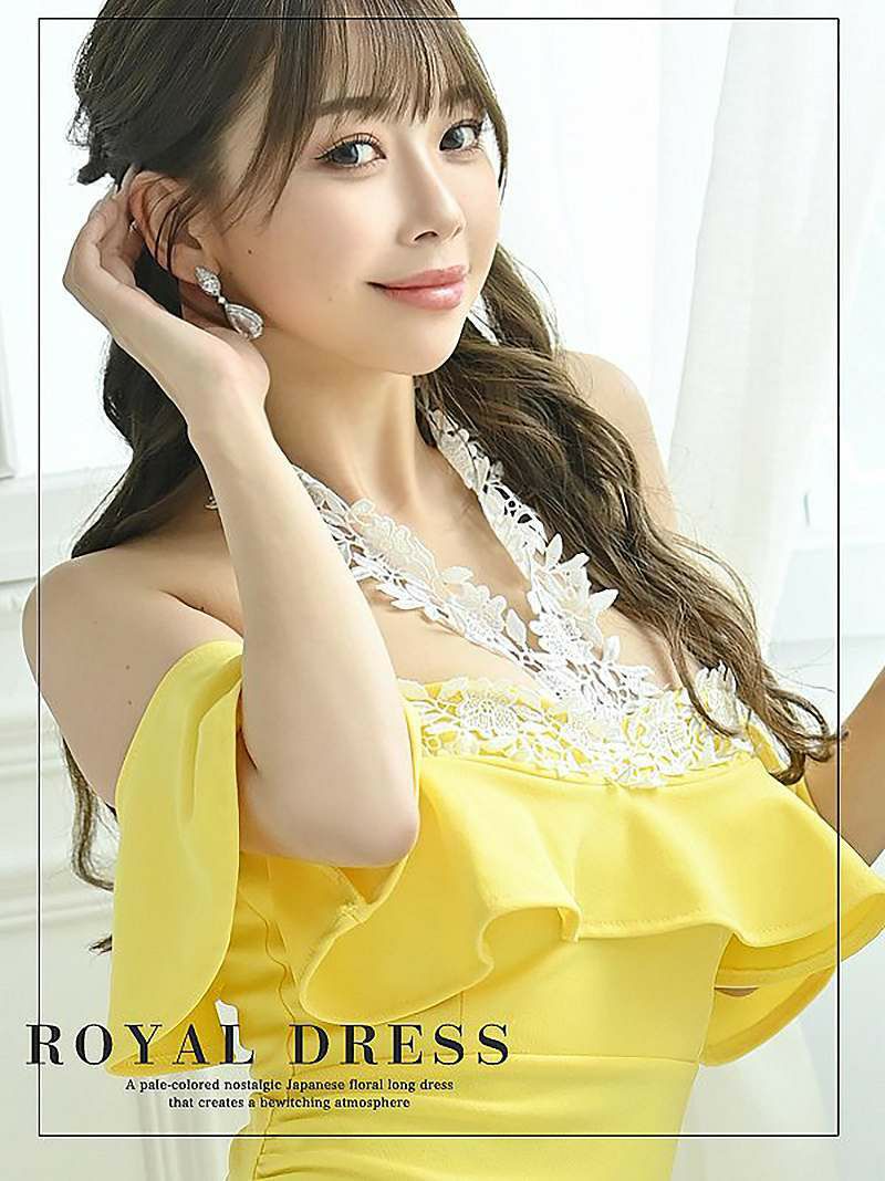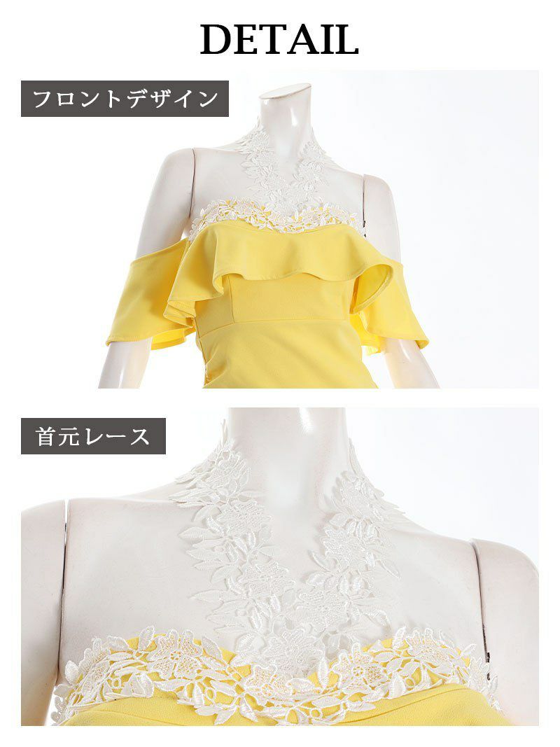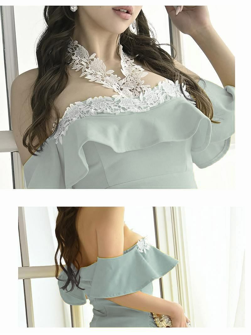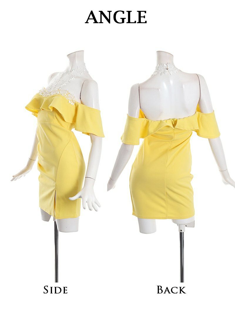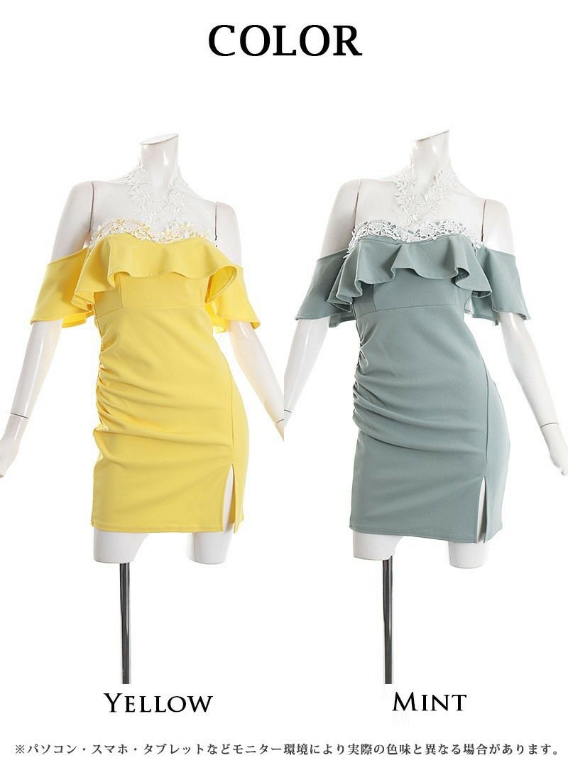 5. ホルターネックレースオフショルタイトキャバドレス きわ 着用 ミニドレス【Ryuyu】(S/M/L)(ミント/イエロー)