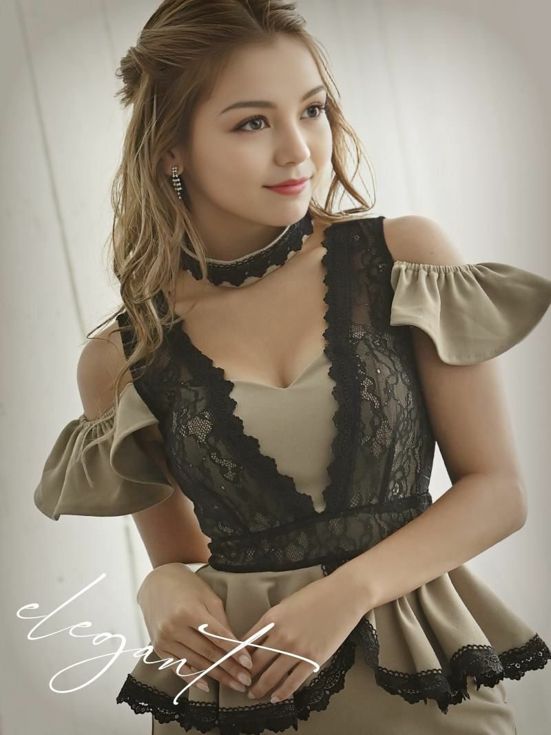 オープンショルダーレースデザインタイトミニ丈キャバドレス【Ryuyu】