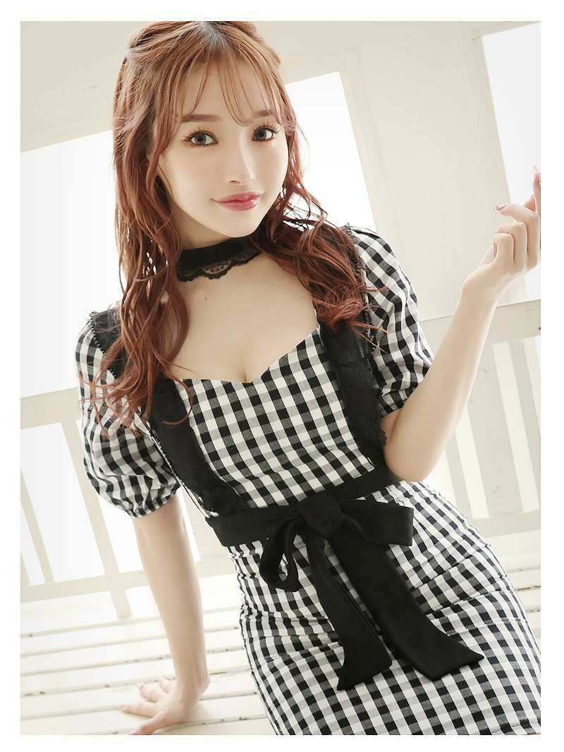 チェク柄ミニドレス チョーカー付きフェミニンキャバクラドレス【Ryuyu】