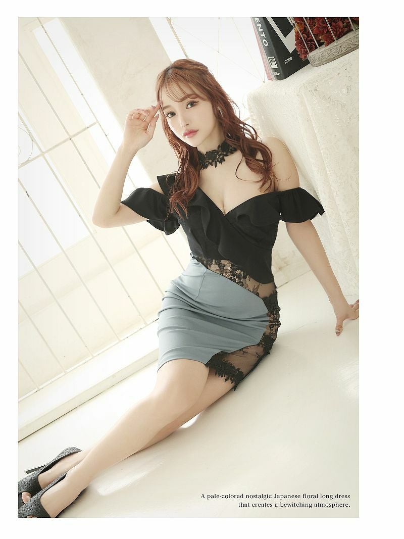6. えちえちブラックレースワンショルデザインミニドレス【Ryuyu】(S/M/L)(ベージュ/ブルー) ptpl
