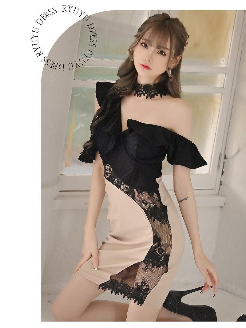 5. えちえちブラックレースワンショルデザインミニドレス【Ryuyu】(S/M/L)(ベージュ/ブルー) ptpl