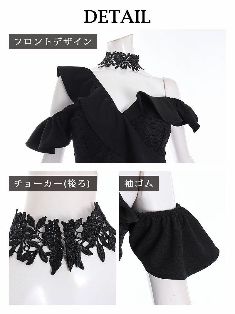 えちえちブラックレースワンショルデザインミニドレス【Ryuyu】