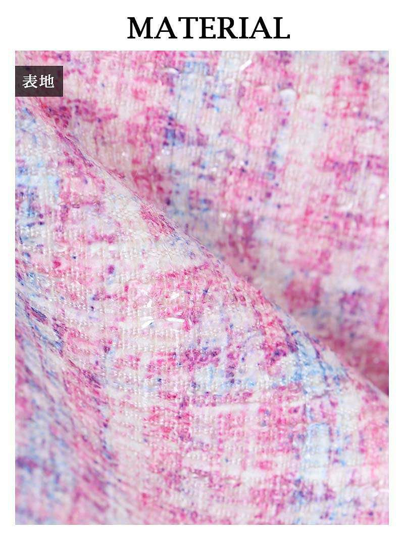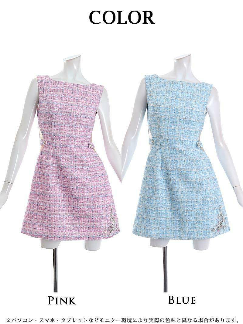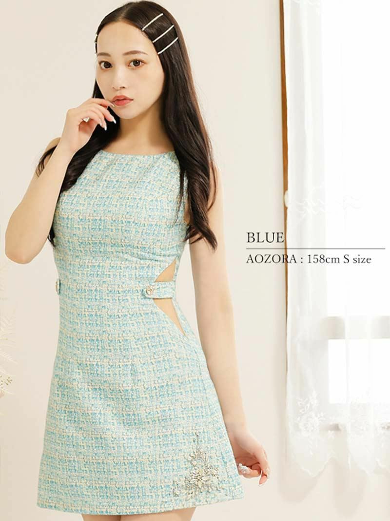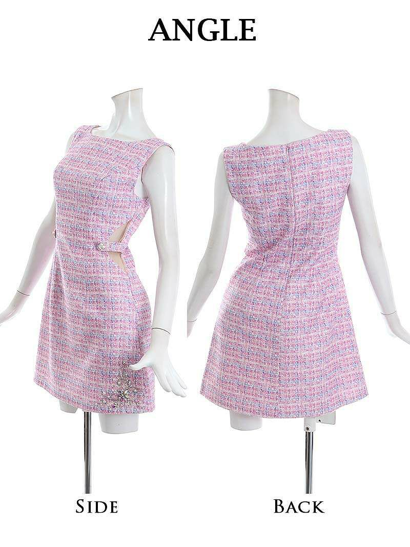 上品ツイード素材に、さりげないウエスト透けが色気をプラスしたAラインキャバドレス。