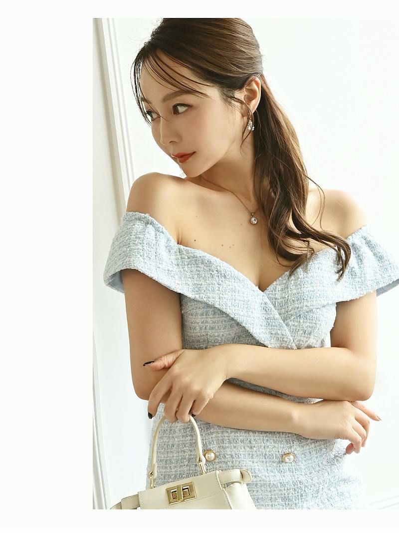 谷間見せツイードデザインタイトキャバドレス【Belsia】