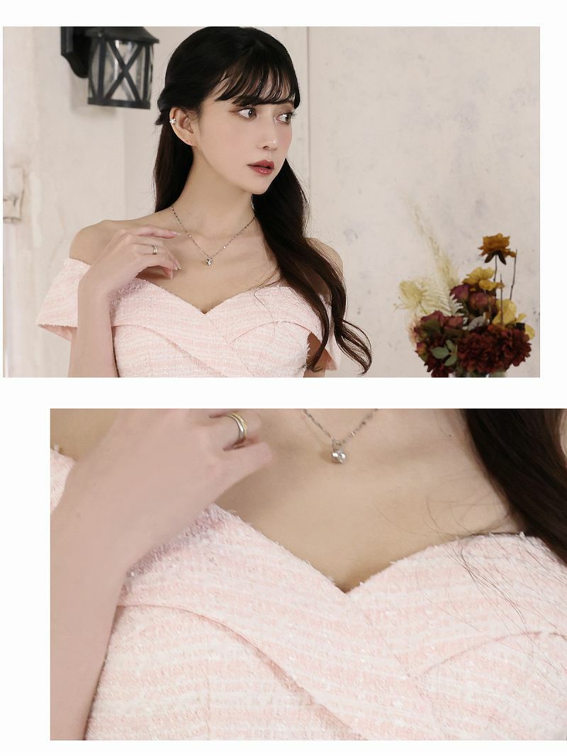 5. クラシカルツイードデザインタイトオフショルダーキャバドレス【Belsia】(S/M/L)(ブラック/ブルー/ピンク) ptpl