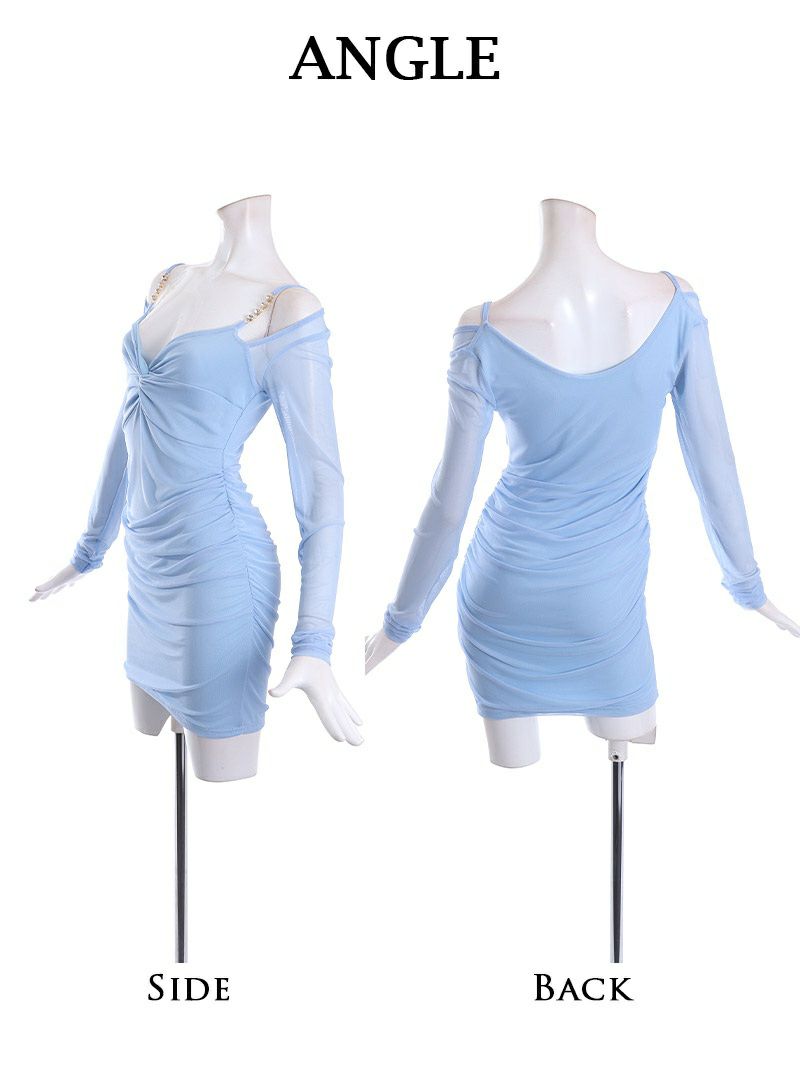 4. 先行予約割¥3480→¥3305!※一部予約販売※オープンショルダーストレッチメッシュミニ丈キャバドレス【RyuyuChick】(M/L)(ブラック/ホワイト/ブルー)