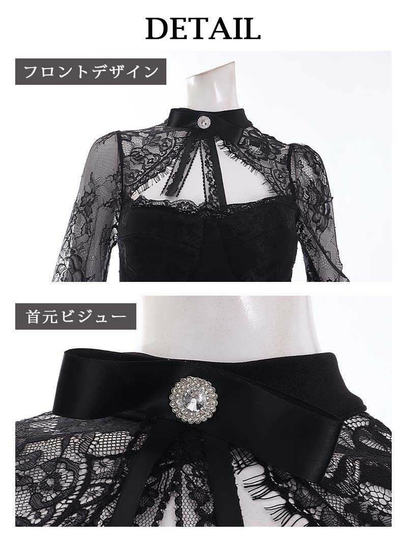 5. 先行予約割¥4380→¥4160!※一部予約販売※レース袖ビスチェ風タイトキャバドレス りせり 着用 ミニドレス【RyuyuChick】(S/M/L/XL(2L))(ブラック/ホワイト)