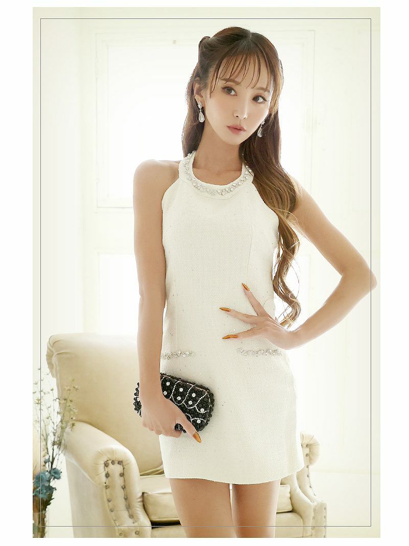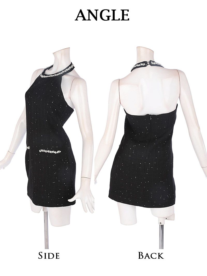 華奢見せ出来るアメスリツイード♪ ゴージャスビジュ高貴ツイードワンピース 武田静加 着用 キャバドレス【Belsia】(S/M/L)(ブラック/ホワイト) ptpl