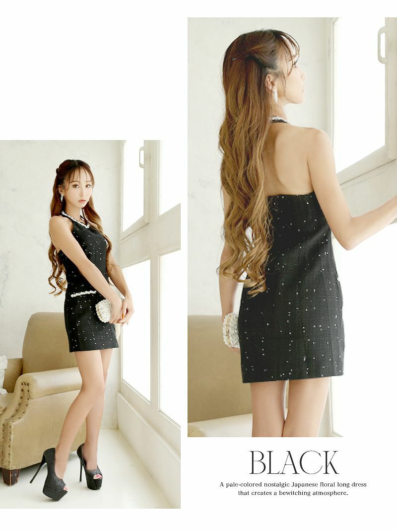 5. ゴージャスビジュ高貴ツイードワンピース 武田静加 着用 キャバドレス【Belsia】(S/M/L)(ブラック/ホワイト) ptpl