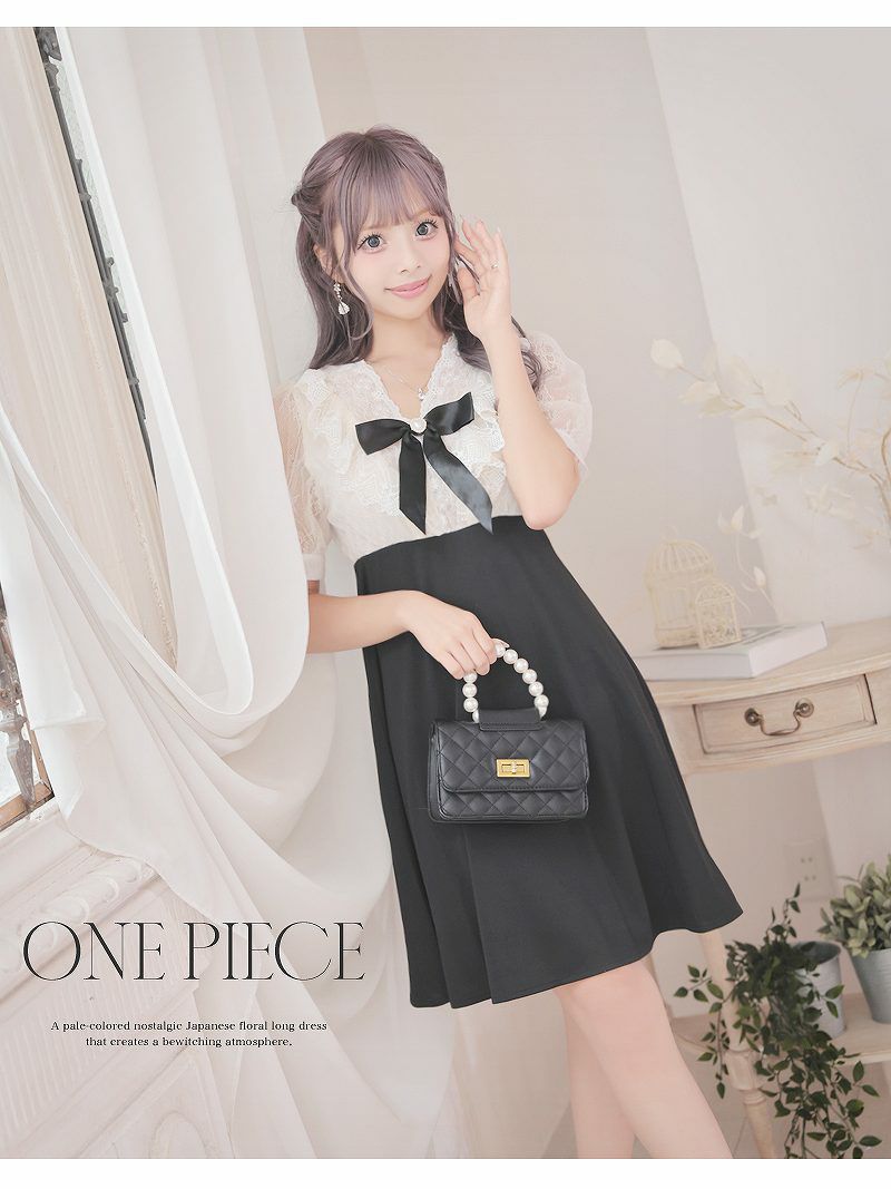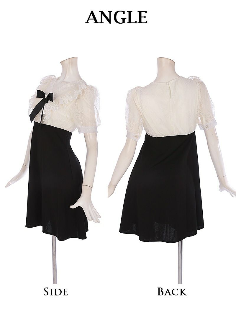 お上品な可愛さがモテ確実! ドーリーレース韓国風フレアキャバドレス あいさ 着用 ミニドレス【RyuyuChick】(M)(ブラック)